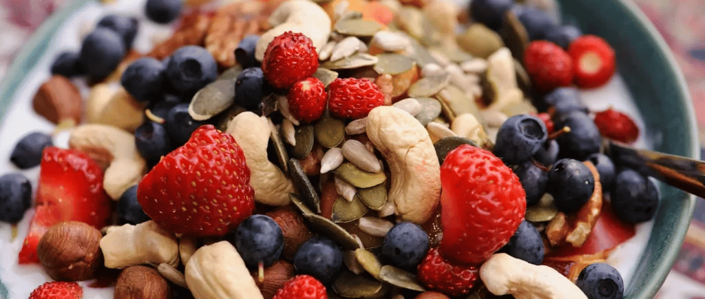 Vitaminas y minerales provenientes de frutas o verduras.. Por ejemplo: plátano, manzana, frutos rojos, espinacas, zanahoria, tomate, etc.